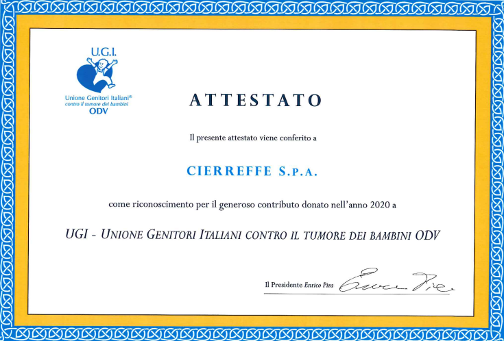 Cierreffe Spa รจ da sempre attenta alle tematiche legate ai bambini,ย in special modo la nostra vicinanza รจ alla Onlus U.G.I. Unione Genitori Italiani contro il tumore dei bambini.